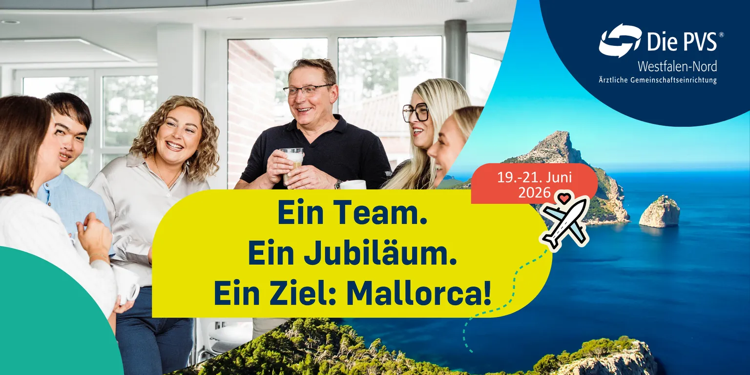 Diese Reise steht unter dem Motto „Ein Team. Ein Jubiläum. Ein Ziel: Mallorca!“ – ein ganz besonderes Erlebnis, das nicht nur die Schönheit der Insel in den Mittelpunkt stellt, sondern auch unser gemeinsames Jubiläum feiert. Mallorca ist ein Ort voller Kontraste, der Tradition und Moderne auf einzigartige Weise miteinander verbindet. Von den idyllischen Buchten und atemberaubenden Landschaften bis hin zu charmanten Dörfern und kulturellen Höhepunkten. Hier wollen wir eintauchen, neue Perspektiven gewinnen und gemeinsam Ecken entdecken, die Ihr so vielleicht noch nicht gesehen habt.